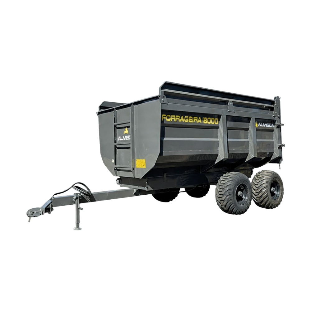 Ideal para o transporte de grandes volumes de forragem, silagem e feno. Com capacidade de 8.000 kg, esta carreta forrageira da marca Almeida possui estrutura robusta e 2 eixos, proporcionando maior estabilidade e segurança no transporte. É a solução perfeita para otimizar a logística na sua propriedade, garantindo eficiência e durabilidade no manejo de alimentos para o gado.